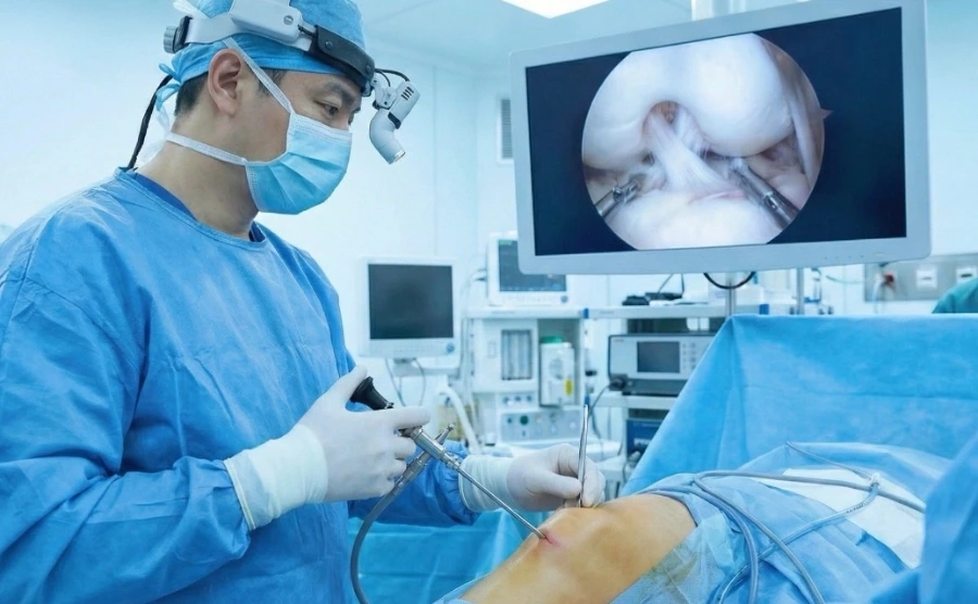 - 關節鏡進入關節腔:鏡頭提供高清視野。