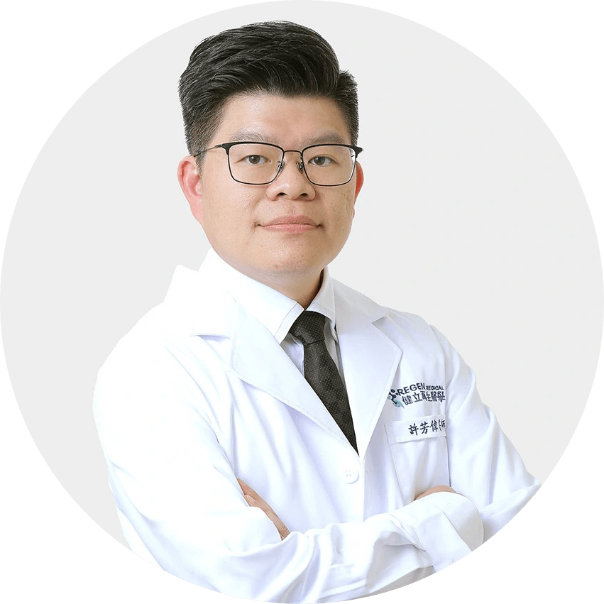 Our Team 醫療團隊 Our Team 醫療團隊 許芳偉醫師 醫師 脊椎微創與疼痛治療專家許芳偉醫師被譽為中生代骨科醫師的後起之秀,在脊椎微創手術與疼痛治療領域擁有深厚資歷。他曾先後任職於光田醫院、台北榮總、台中榮總等知名醫療院所,累積了豐富的臨床經驗。 身為骨科專科醫師,手術台是他的專業主場;但在健立診所的診間裡,「讓你不白痛」才是他行醫的終極目標。 脊椎微創與疼痛治療專家許芳偉醫師被譽為中生代骨科醫師的後起之秀,在脊椎微創手術與疼痛治療領域擁有深厚資歷。他曾先後任職於光田醫院、台北榮總、台中榮總等知名醫療院所,累積了豐富的臨床經驗。許芳偉醫師致力於為患者提供高效且精準的治療,幫助他們擺脫病痛,重拾生活品質。 台北健立門診掛號 台北健立門診掛號 骨專醫字號第002188號 經歷 宏仁醫院 骨科主任 光田醫院骨科部 主治醫師 台北榮民總醫院 骨科總醫師 台中榮總骨科脊椎外科 資深研究醫師 台灣脊椎外科醫學會專科醫師 台灣脊椎微創內視鏡醫學會會員 台灣疼痛醫學會會員 台灣脊柱側彎關懷協會理事 中華民國骨科專科醫師 主治項目 五十肩治療 退化性關節炎 脊椎退化骨刺治療 椎間盤突出治療 坐骨神經痛治療 鈣化性肌腱炎 肩頸痠痛、下背痛治療 微創關節鏡手術 肩旋轉肌無刀治療 半月板損傷治療 關節授動術 PRP療法 PRF療法 Certificates Case 成功案例經驗分享 健立醫療堅持醫療專業與品質 把關優良的服務品質 Read More 「不想換人工關節放棄單車…」吳先生與陳女士的 PRF 免動刀再生修復之路 腳痛到拍片都困難?每走一步都像踩在碎玻璃上,人氣KOL晚安老司雞靠SIS超磁能擺脫足底筋膜炎! 「天天搬重物,腰痛怎麼辦?」王先生透過非侵入式SIS超磁能改善深層疼痛 誰適合胃肉毒? 許芳偉醫師私藏的補鈣清單大公開