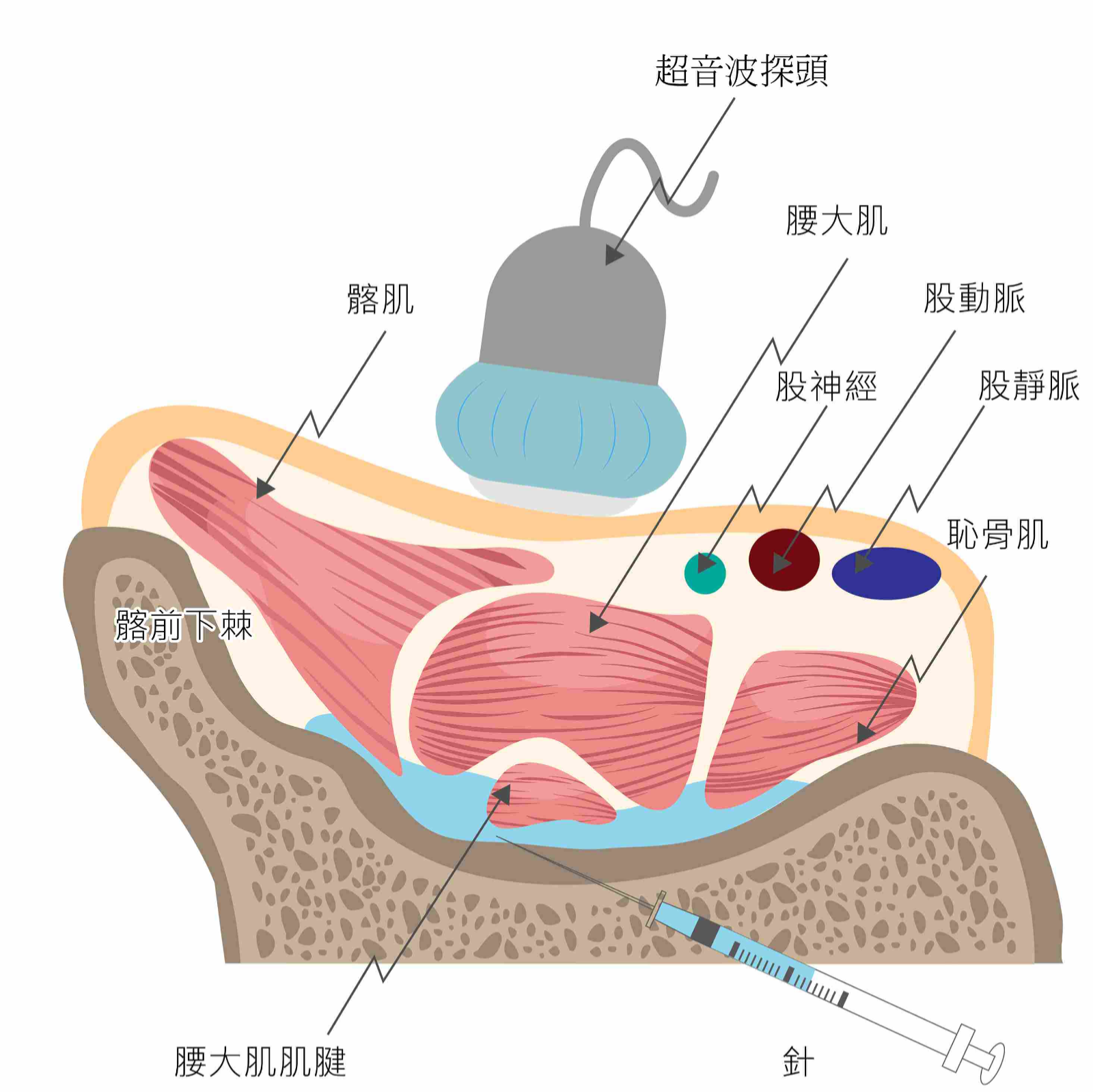 膝與髖關節的神經分布複雜,涉及股神經、坐骨神經等多條神經分支,必須透過超音波導引,才能精準定位並注射藥物,才能達到理想的止痛效果。