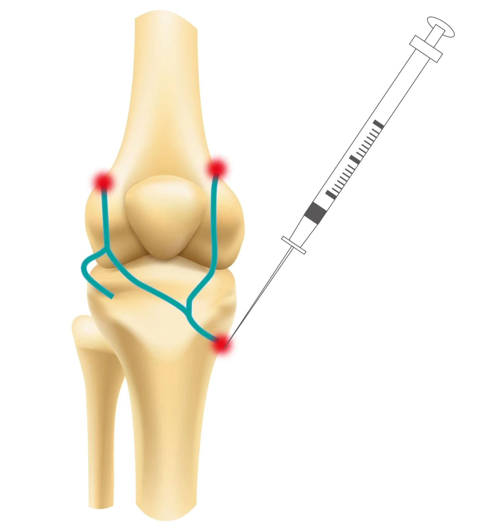 - 膝關節神經分支阻斷(Genicular Nerve Block):針對膝周主要痛覺神經。